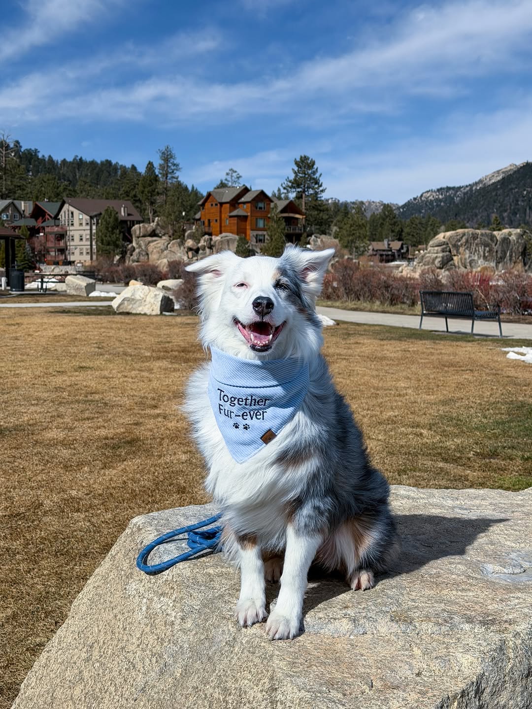 Blue Cordiroy Set - Includes, Embroidered bandana, bowtie and waste bag holder.